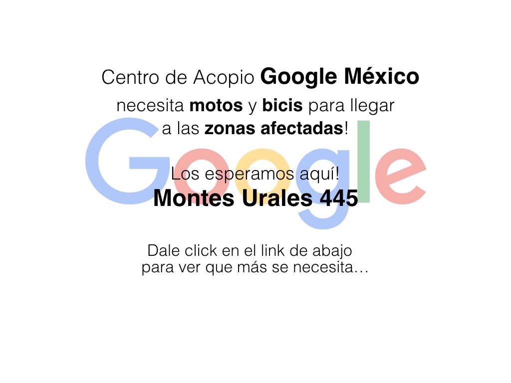 Google México cuenta con un centro de acopio y también requiere motos y bicicletas para llegar a las zonas afectadas.
