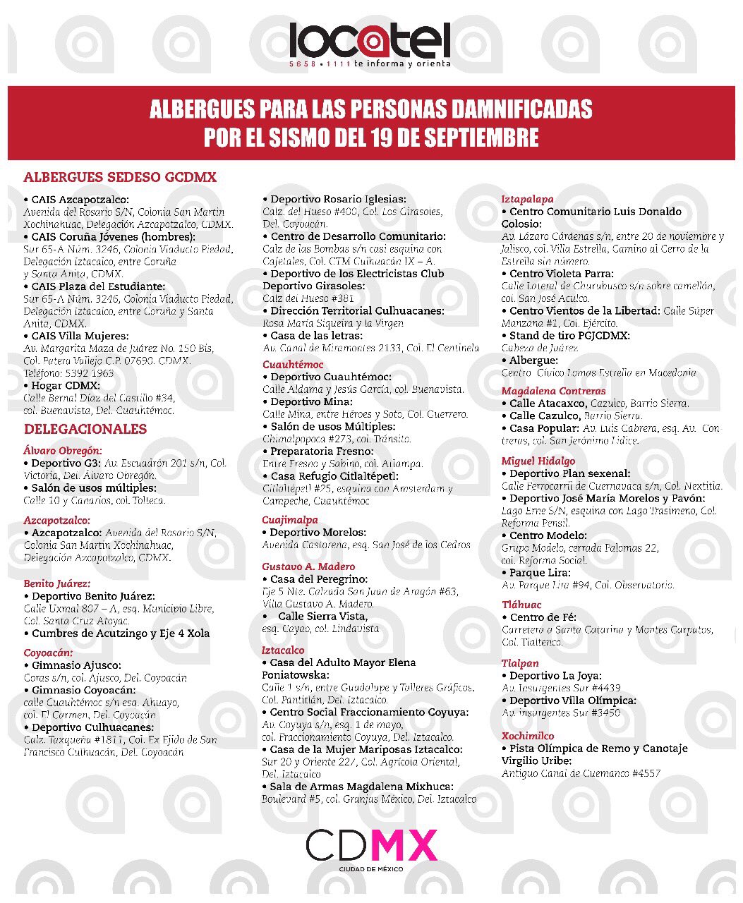 La Ciudad de México ha habilitado centros de acopio para recolectar ayuda para las personas afectadas por el sismo, en: